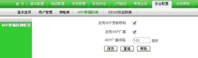 图一. HiPER路由器该功能启用位置(WEB页面—安全配置—ARP欺骗防御)
