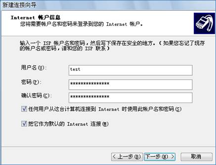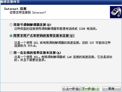 在电脑上配置PPPoE客户端只需要添加一个宽带连接,并将其放在电脑的启动文件夹,每次电脑开机会自动拨号自动连接,这样更是简化网管人员的工作,对上网的客户来说是网络方式并没有改变。电脑的拨号操作如图: