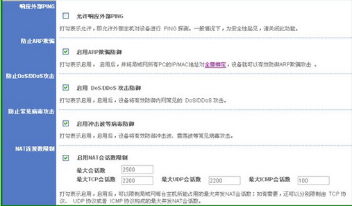NAT 连接数限制,基于站点、URL和关键字的应用层过滤,对内网P2P的控制等。
