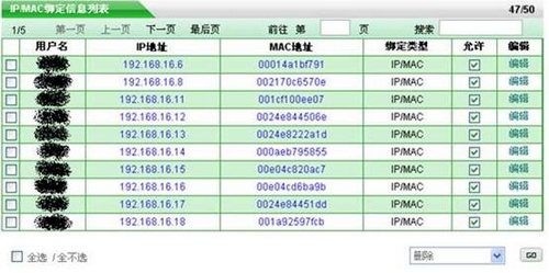 通过IP/MAC绑定可以快速定义只允许已经授权的电脑上网。不允许上网则取消“允许上网”的勾即可。