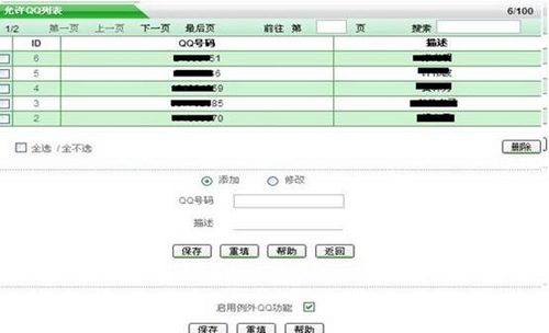 允许例外QQ号码,限制QQ应用精确至QQ号码,如图所示: