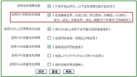 ReOS 2009网游优先配置截图:WebUI—智能带宽管理—应用优先保障