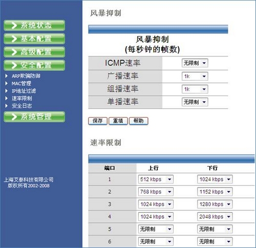 A.酒店客房网带宽管理:经济型酒店的客人中商务人士占了很大比重,他们对网络的依赖程度高,除了正常的网络办公外还有娱乐休闲的需求。商务人士在畅享网络娱乐休闲时经常会使用迅雷、BT或其它P2P软件,而P2P软件对网络带宽的占用率极高,往往一两个客人使用P2P软件几乎就能把整个带宽全部占用,导致其他网络应用无法正常进行。艾泰科技的安全网关UTT 3640和UTT 2512在其自主研发的网络操作系统ReOS 2009基础上,可以专门对P2P软件进行限速,同时配合安全联动型交换机SG 2124、管理联动型交换机SG 3124R分别支持设置每个端口在上传和下载方向的带宽,可以对每台接入的电脑进行带宽限制,保障客人在正常的商务办公的同时又能畅享酒店的高速带宽而不影响他人的正常网络应用。