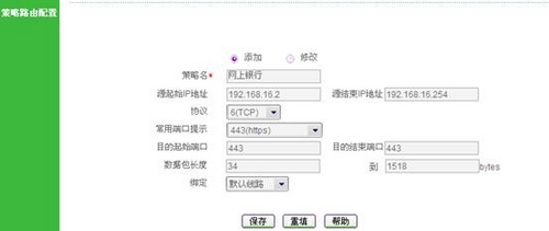 所谓策略路由既应用调度,主要是实现源地址基于不同的协议和应用端口选择不同的下一条网关转发数据,通俗的理解也就是通过软件应用端口进行外出规则调度,将某一类软件指定从某一个WAN口出去,如指定80端口从WAN2出去,那么所有访问网页的请求,则被调度到WAN2端口又或者指定443端口从WAN1出去,那么所有访问Https的请求则被调度到WAN1,而其他应用还是按照双线或多线路的负载均衡方式处理。而源地址路由,是指网络内的部分电脑,将其所有的网络访问指向某一个外网接口(WAN),固定从某一个WAN口转发,比如:将192.168.16.20-192.168.16.100,这80台电脑,所有的访问外网的请求均指向WAN2口,那么这80台电脑访问外网的请求会固定走WAN2口转发,不会因为端口的应用而不同。