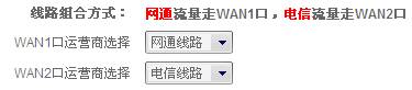 电信联通策略路由功能,轻松实现WAN1和WAN2运营商线路自由组合,如图所示: