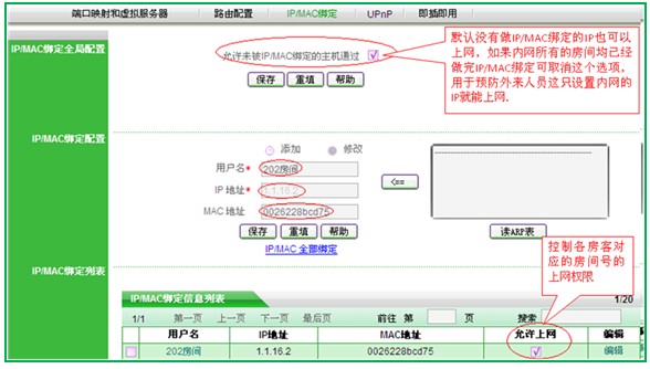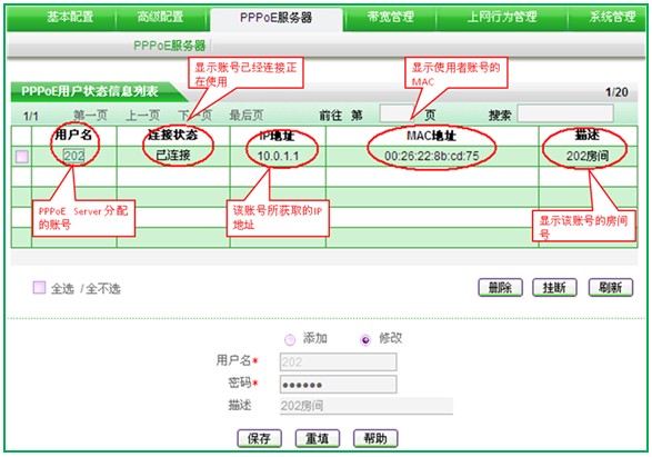 设置每个PPPoE Server分配的账号对应各房间号,如图所示:
