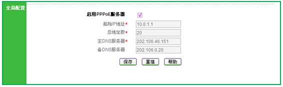 WEBUI->PPPoE 服务器页面,启用PPPoE 服务器功能,如图所示: