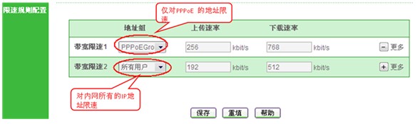 PPPoE Server的IP地址组跟非PPPoE 用户的IP地址组皆可分开限速,如图所示: