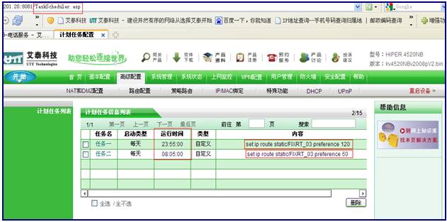 线路被屏蔽,我们通过艾泰路由器的计划任务功能,做两条修改