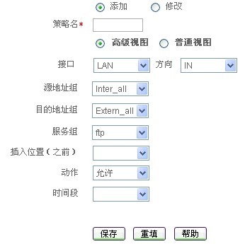 的防火墙功能,设置上班时间段,控制内部员工的上网行为,约束员工在工作时间内通过网络只能办理与工作相关的业务,且访问控制策略应用极为灵活,将地址组、服务组进行组合,以达到对不同的人实现不同的控制策略。