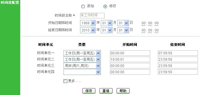 时间段配置: