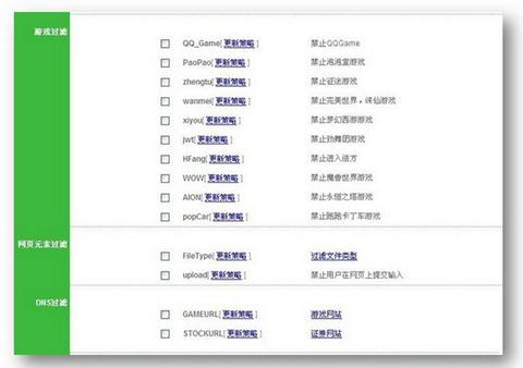 针对员工的上网行为管理,艾泰进取520可是相当有对策。它在这方面可谓既全面又有专业,能够管控QQ/MSN/旺旺/飞信等即时通信软件,也能禁止BT/迅雷/PPLive/PPS/等P2P及在线视频软件,对于QQ游戏/劲舞团/魔兽世界等网络游戏和HTTP下载/网页提交/股票、游戏网址、HTTP/SOCKS代理也能全令禁止。分段分时的人性化管理,让老板们不再担心工资发得冤,也让员工一心一意为工作,全面提高员工的工作效率。