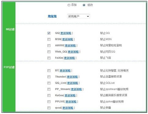 别看HiPER 510-8 是一台小巧玲珑的SOHO型企业路由器,它的上网行为管理功能可是相当简单又专业。它能分地址段分时管理上网形为,能禁止QQ、MSN、阿里旺旺、飞信等即时通讯软件,能管控QQ游戏、泡泡堂、劲舞团、魔兽世界等游戏软件,还能阻止BT、迅雷、QQlive、PPlive、PPS等在线视频软件。如此有效的管理员工的上网行为,可是为老板们解决了一大难题,也创造了一个高效率的办公环境。