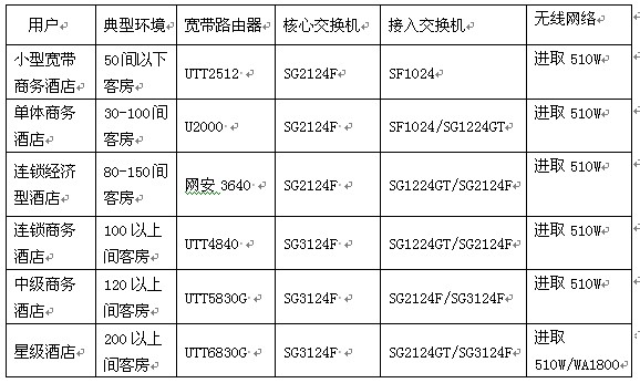 酒店网络需求