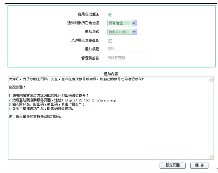 此功能建议配合上网管理-通告功能,将修改密码的方式通告给内网用户。