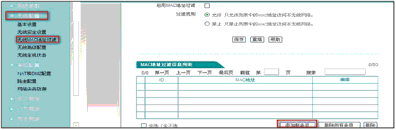 →无线MAC地址过滤→添加新条目,配置如下图: