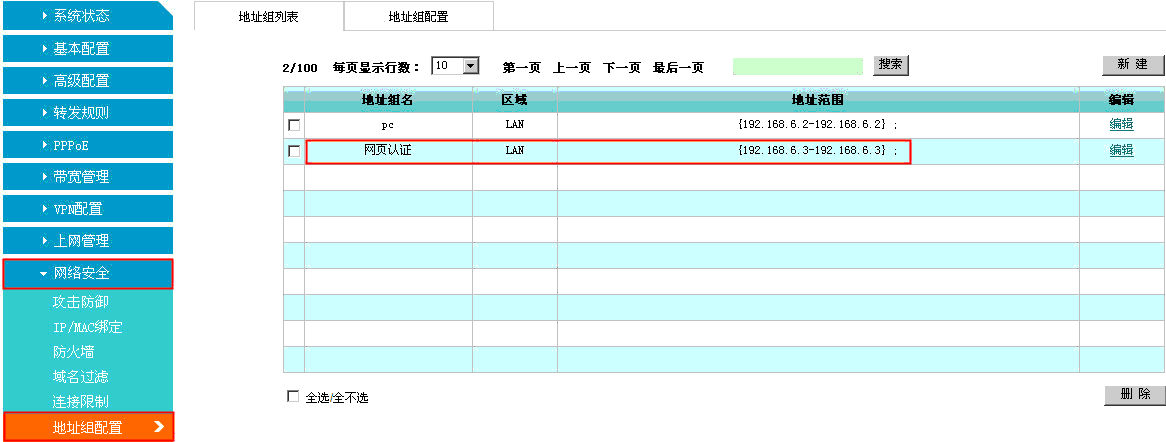 2、WEBUI—>网络安全—>地址组配置,将此IP添加到地址组中,设置如下图:
